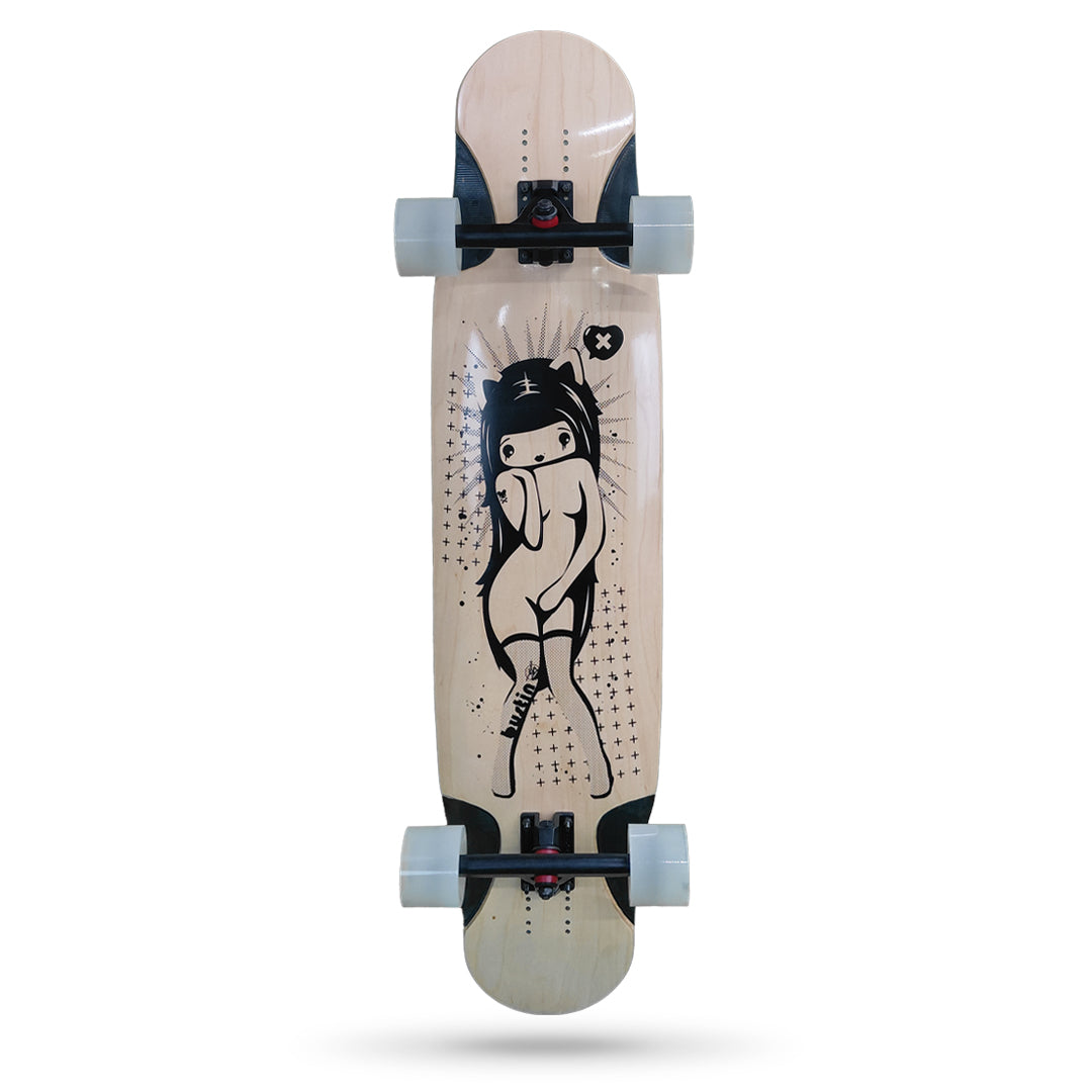 The Bustin Shrike Yann blends street-art aesthetics with precision downhill engineering, creating a prebuilt longboard that is as visually striking as it is performance-driven. Known for its versatility, the Shrike offers the stability and stiffness of a high-performance deck built for downhill and freeride, while remaining accessible for everyday riding.