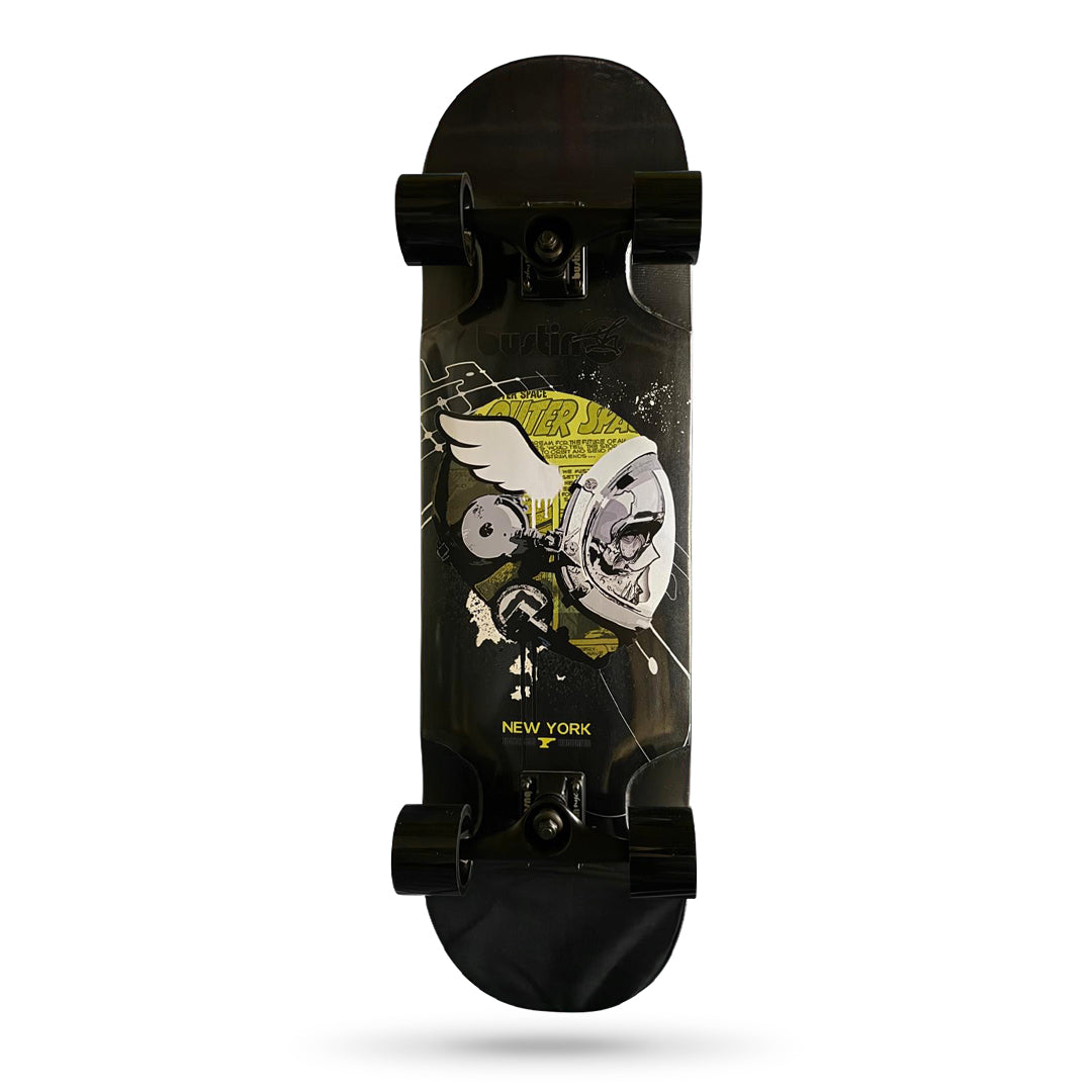With its bold DH Space Yellow graphic, this board is designed for riders who want the smooth, flowing feel of longboard wheels without giving up the ability to ollie, flip, or navigate obstacles throughout the city. Versatile, responsive, and built for daily action, the Yoface Black handles everything from fast carving to urban exploration with ease.